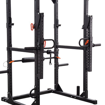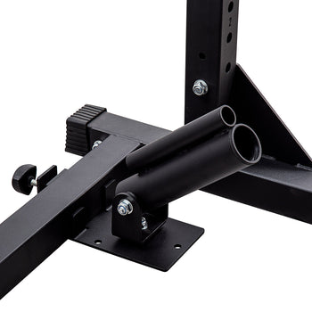 Anti-Scratch J-Cups: Easily adjustable to different heights for various exercises, ensuring the barbell is set at the optimal height for squats, bench presses, and more.